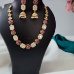 Regal Splendor: Luxury Long Kundan Necklace in Magenta & Golden Tone with Layered Chains & Earrings" ✨💎 |