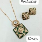 "Regal Charm: Luxury Copper Choker Necklace with pink color Pendant & Elegant Earrings" |