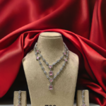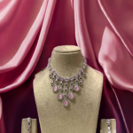 Luxurious AD Necklace Set – Royal Baby Pink & Silver Elegance |