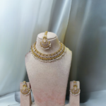 Royal Golden& White Color Luxurious Reverse AD Necklace Set with Maang Tikka |