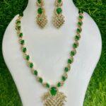 "Royal Glow: Luxury Mehendi Polish AD Necklace Set in Green |