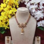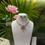 "Regal Charm: Luxury Copper Choker Necklace with pink color Pendant & Elegant Earrings" |