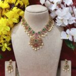 Luxurious AD Royal Green & Silver Necklace Set β A Regal Statement of Elegance |