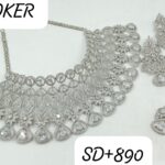 Luxurious AD Choker Set with Silver Color & Matching Earrings |